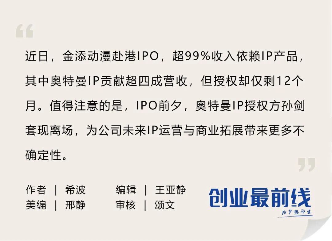 不过,金添动漫仍然面临业绩高度依赖外部IP授权、核心IP奥特曼授权期限仅剩12个月、关键股东孙剑在IPO前套现离场等多重挑战。